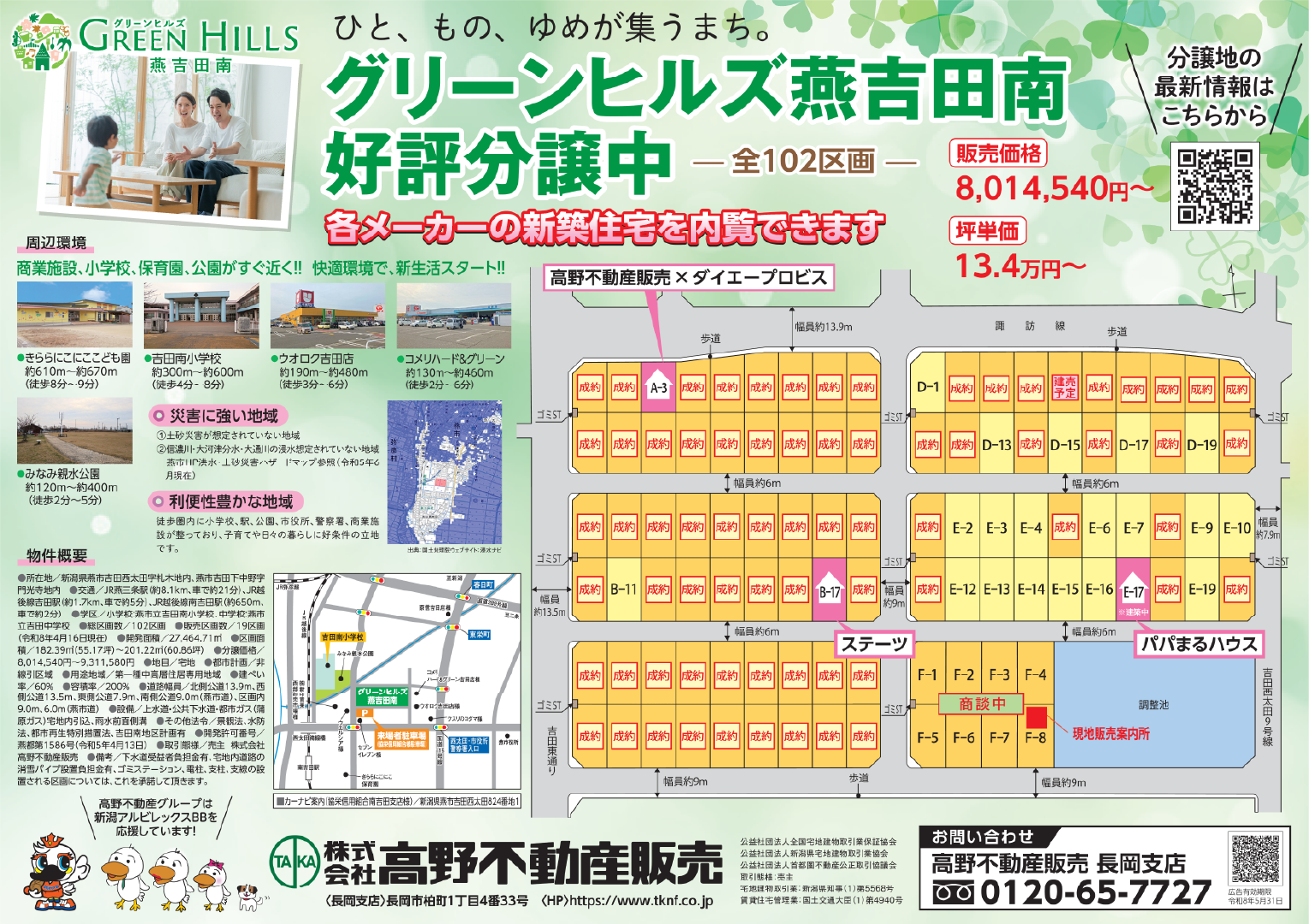 グリーンヒルズ燕吉田南は、小学校や保育園、公園、商業施設が徒歩圏内に揃い、子育て世代にも暮らしやすい環境が魅力の分譲地です。